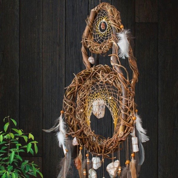 👉Cuanto mayor sea el tamaño del atrapasueños, mayor cantidad y tamaño en piedras, plumas y adornos.