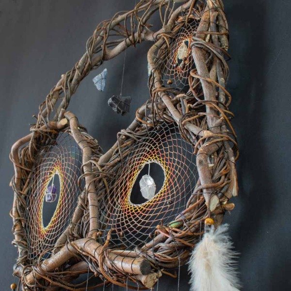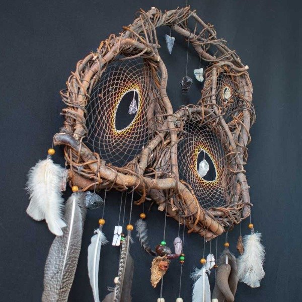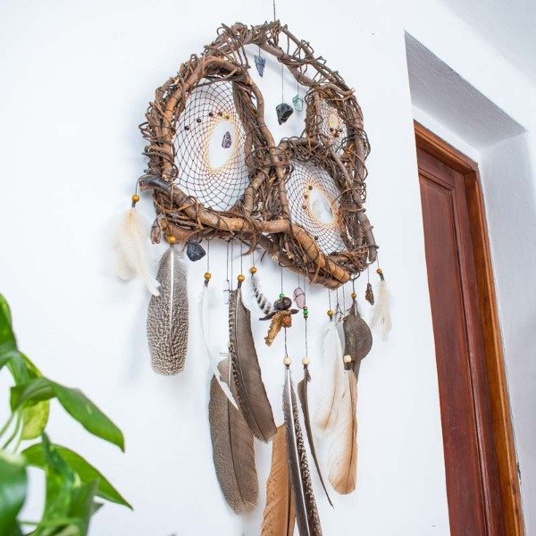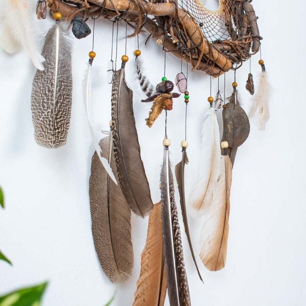 👉Cuanto mayor sea el tamaño del atrapasueños, mayor será la cantidad y tamaño de piedras, plumas y adornos.